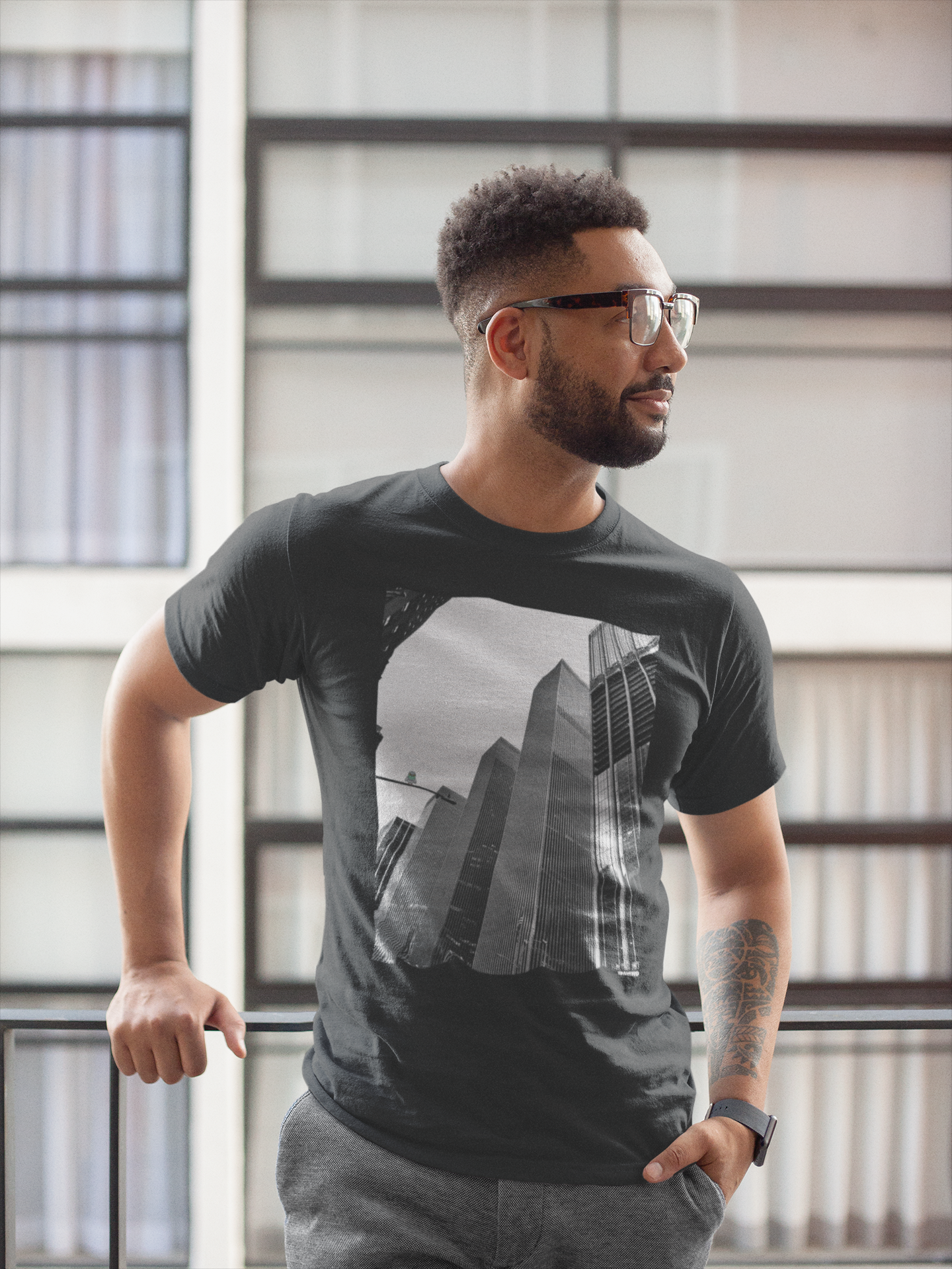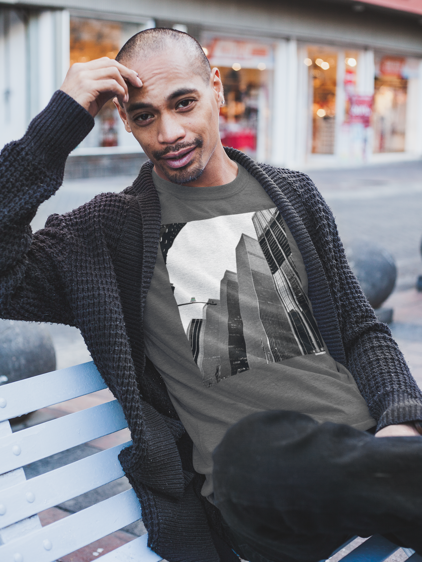 This design looks straight up Sixth Avenue — sharp lines, endless glass, and the weight of the city pressing down. Perched above it all is the SNWBRD pigeon: small in scale, heavy in presence. Because in this city, attitude matters more than size.
